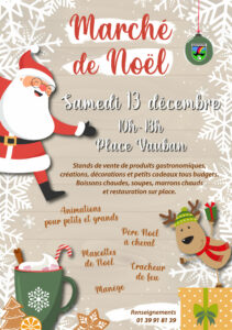 Pour vous aider à bien préparer les fêtes de fin d’année, la ville vous propose un Marché de Noël, avec vente de produits gastronomiques et de cadeaux tous budgets.